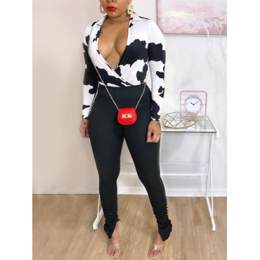 Lovely Casual V Neck Animal Print White Two Piece Pants Set(No-positioning Printing)