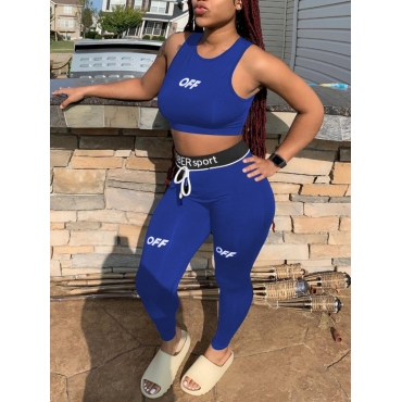 Lovely Sportswear Letter Print Drawstring Blue Yoga Two Piece Pants Set