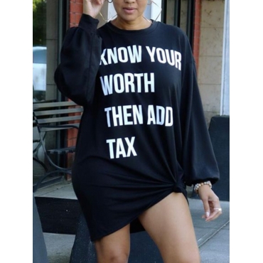 Lovely Casual O Neck Letter Print Loose Black Knee Length Dress