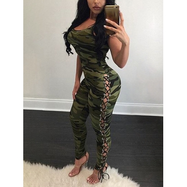 Lovely Stylish Spaghetti Straps Print Bandage Design Camo One-piece Jumpsuit