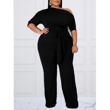 Lovely Casual One Shouder Bandage Design Black Plus Size One-piece Jumpsuit