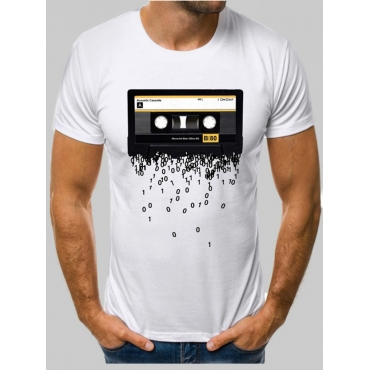 Lovely Casual O Neck Print Patchwork White Men T-shirt