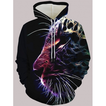 Lovely Street Hooded Collar Leopard Print Black Men Hoodie