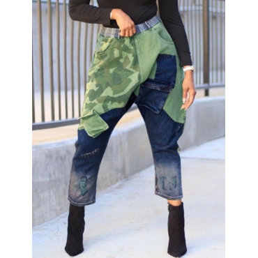 Lovely Street Camo Print Patchwork Dark Blue Pants