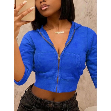 Lovely Casual Hooded Collar Kangaroo Pocket Deep Blue Hoodie