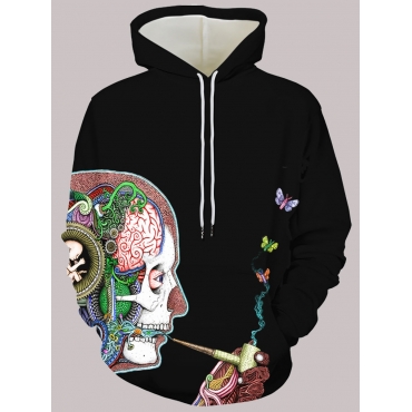 Lovely Trendy Skull Butterfly Print Patchwork Black Men Hoodie