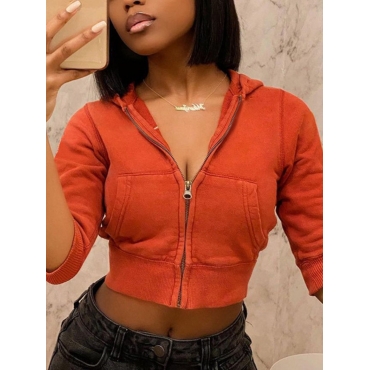 Lovely Casual Hooded Collar Kangaroo Pocket Orange Hoodie