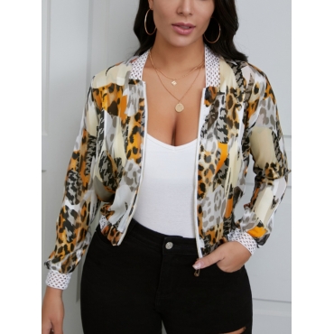 Lovely Casual Leopard Print Patchwork Zipper Design Jacket