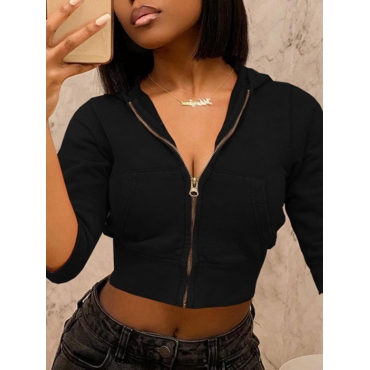Lovely Casual Hooded Collar Kangaroo Pocket Black Hoodie