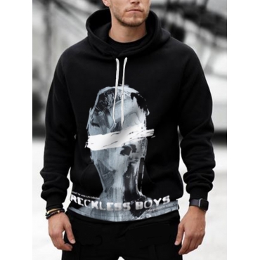 Lovely Casual Hooded Collar Letter Print Patchwork Black Men Hoodie