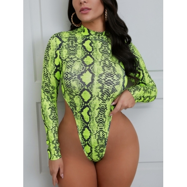 Lovely Casual Half A Turtleneck Cobra Print Green Bodysuit
