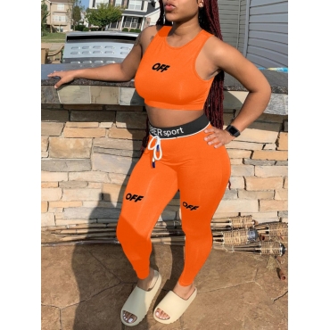 Lovely Sportswear Letter Print Drawstring Croci Yoga Two Piece Pants Set