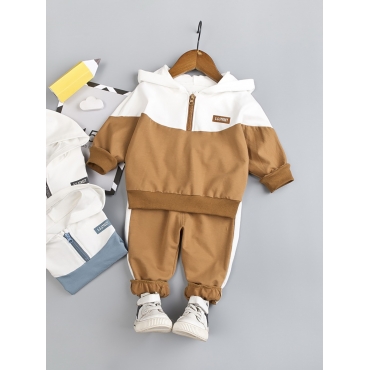 Lovely Sportswear Hooded Collar Color-lump Patchwork Brown Boy Two Piece Pants Set