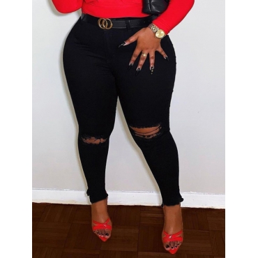 Lovely Casual Ripped Skinny Black Plus Size Jeans