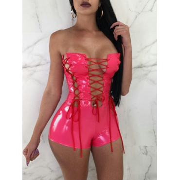 Lovely Sexy Off The Shoulder Bandage Hollow-out Design Rose Red One-piece Romper
