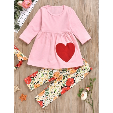 Lovely Casual O Neck Print Pink Girl Two Piece Pants Set