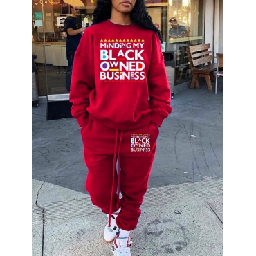 Lovely Street O Neck Letter Print Drawstring Design Red Two Piece Pants Set