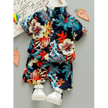 Lovely Bohemian Floral Print Multicolor Boy Two Piece Shorts Set