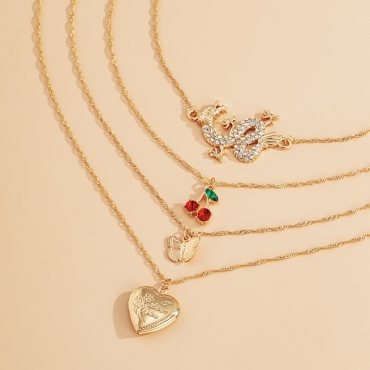 Lovely Stylish Heart-shaped Sequined Gold Necklace
