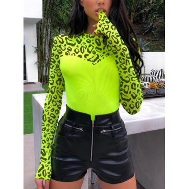 Lovely Sweet O Neck Leopard Print Green T-shirt