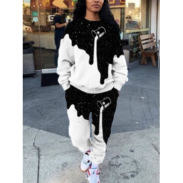 Lovely Casual Dropped Shoulder Star Milk Print Black Two Piece Pants Set