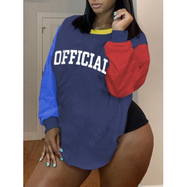 Lovely Casual O Neck Print Asymmetrical Blue T-shirt