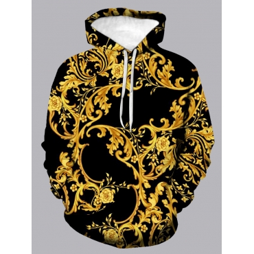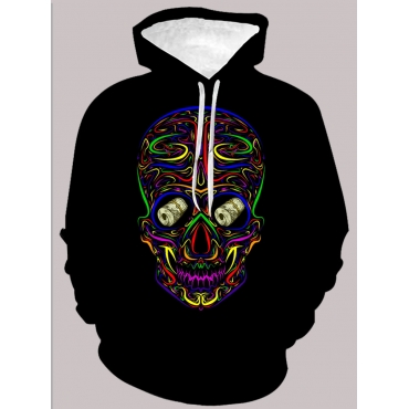 Lovely Casual Hooded Collar Drawstring Print Black Men Hoodie