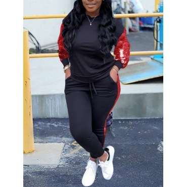 Lovely Casual Sequined Decorative Patchwork Drawstring Design Red Two Piece Pants Set