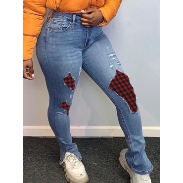 Lovely Casual High-waisted Broken Holes Patchwork Blue Jeans