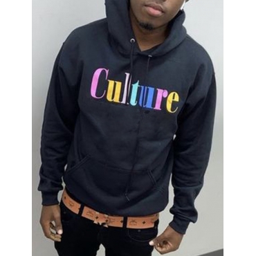 Lovely Casual Hooded Collar Letter Print Black Men Hoodie