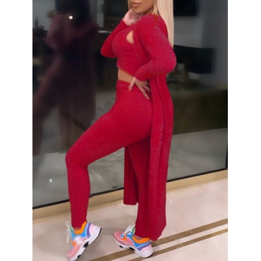Lovely Casual U Neck Basic Skinny Wine Red Three Piece Pants Set