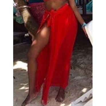 Lovely Casual Split Asymmetrical Red Cover-up(Without Top)