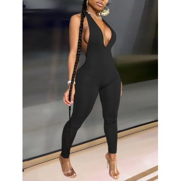 Lovely Sexy Deep V Neck Backless Black One-piece Jumpsuit
