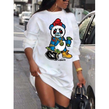 Lovely Street O Neck Cartoon Print White Mini Dress