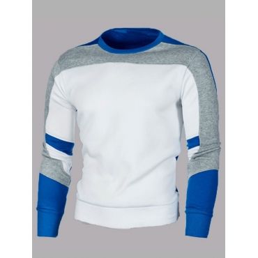 Lovely Casual O Neck Color-lump Stitching Blue Men Hoodie