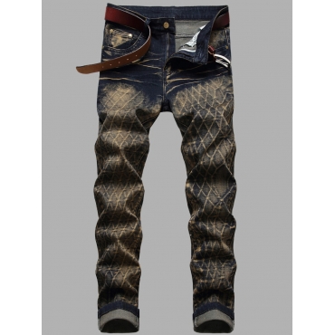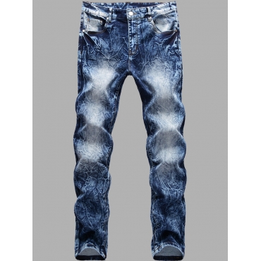 Lovely Casual Mid Waist Print Deep Blue Men Jeans