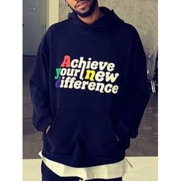 Lovely Casual Hooded Collar Letter Print Black Men Hoodie