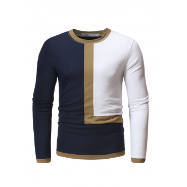Lovely Casual O Neck Patchwork Navy Blue Men T-shirt