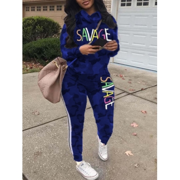 Lovely Sportswear Letter Print Striped Blue Two Piece Pants Set