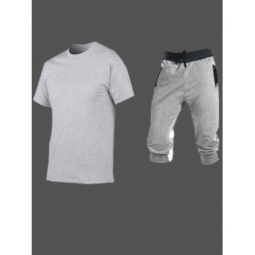 Lovely Casual O Neck Patchwork Grey Two Piece Shorts Set