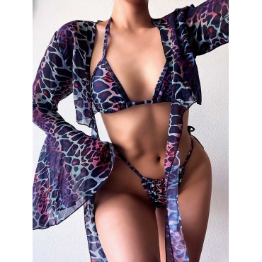 Lovely Sexy Flared Cobra Print Lace-up Modena Three-piece Swimsuit