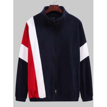 Lovely Casual Color-lump Zipper Design Navy Blue Men Jacket