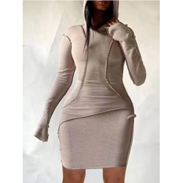 Lovely Casual Hooded Collar Patchwork Beige Knee Length Dress