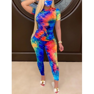 Lovely Casual O Neck Tie Dye Red Two Piece Pants Set