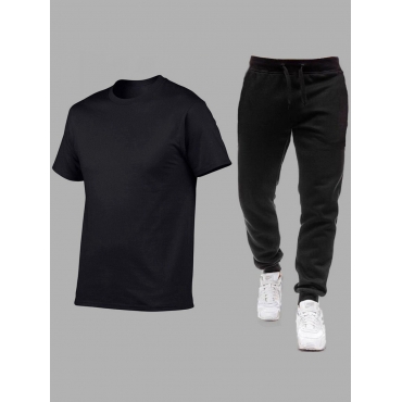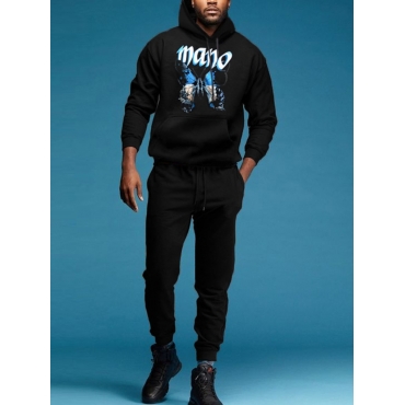 Lovely Casual Hooded Collar Letter Print Black Men Two Piece Pants Set