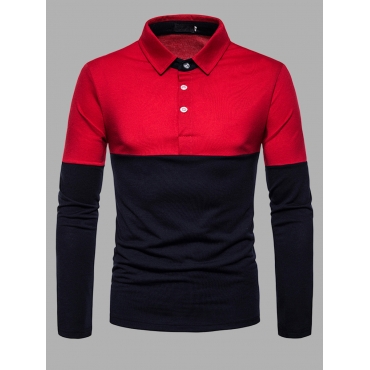 Lovely Work Turndown Collar Patchwork Red Men Polo-shirt