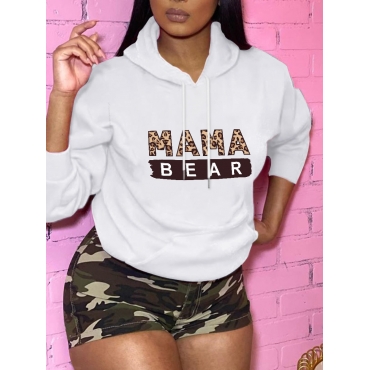 Lovely Street Leopard Letter Print Kangaroo Pocket White Hoodie