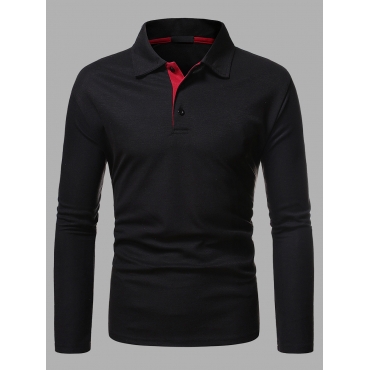 Lovely Casual Turndown Collar Patchwork Black Men Polo