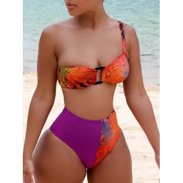 Lovely Trendy Cobra Print Hollow-out Purple Two-piece Swimsuit