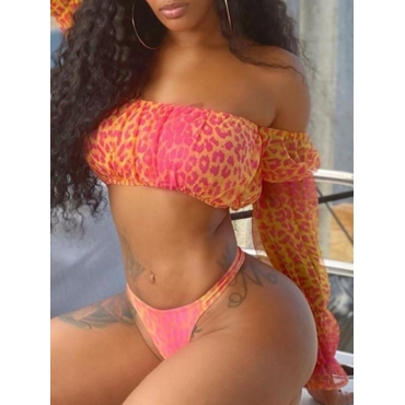 Lovely Casual Leopard Print Ruffle Design Yellow Tankini